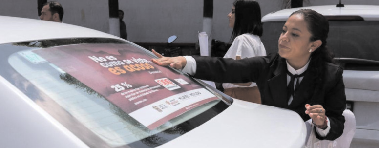 Como parte de las actividades, se realizó la distribución de pegatinas informativas en unidades de transporte público, las cuales contienen mensajes de concientización, números de contacto para denuncias y recordatorios sobre los derechos de las mujeres a viajar libres de violencia. Estas calcomanías fueron colocadas en taxis.