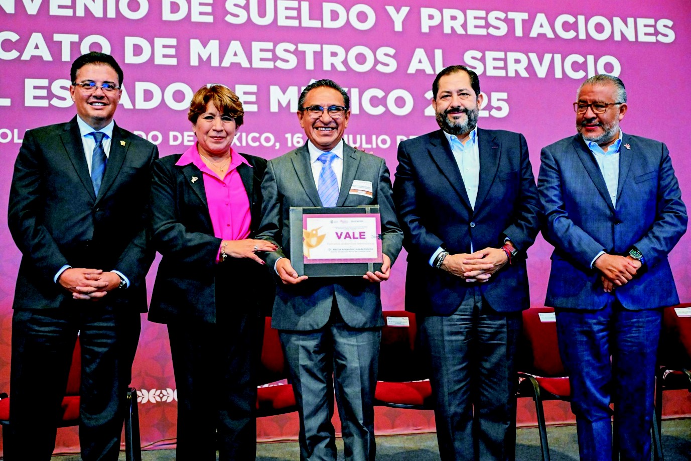 • Horacio Duarte Olivares, secretario general de Gobierno, • Trinidad Franco Arpero, Oficial Mayor, • Miguel Ángel Hernández Espejel, secretario de Educación, Ciencia, Tecnología e Innovación El convenio incluye apoyos médicos como atención a maestros con discapacidad y aquellos con enfermedades graves (por ejemplo, cáncer) Reafirma el compromiso de mejorar infraestructura, equipamiento y profesionalización, alineado con los principios de la Nueva Escuela Mexicana El Convenio de Sueldos y Prestaciones 2025 representa un avance tangible y medible en la mejora de condiciones laborales para más de 105 000 docentes mexiquenses.