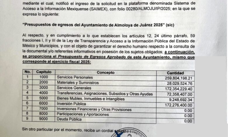 Con un presupuesto de egresos aprobado por 714 millones 71 mil 452 pesos, el Ayuntamiento de Almoloya de Juárez 2025 enfrenta el clásico dilema de muchos gobiernos: gastar más en mantener la burocracia que en hacer obra pública.