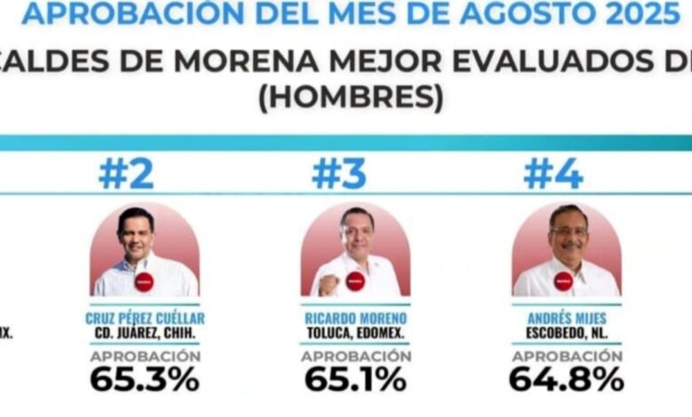 De acuerdo con el más reciente ranking de. Demoscopia Digital, el Presidente Municipal de Toluca, Ricardo Moreno Bastida, se colocó en el tercer lugarnacional entre los alcaldes de Morena mejor evaluados, al registrar una aprobación del 65.1%.El resultado lo sitúa en el grupo de presidentes municipales de Morena con mayor respaldo ciudadanoen todo el país, junto a figuras como Janecarlo Lozano (Gustavo A. Madero, CDMX) y Cruz Pérez Cuéllar(Ciudad Juárez, Chihuahua).Más allá de las cifras, este posicionamiento envía un mensaje político: en Toluca hay unaadministración que logra conectar con la ciudadanía en un contexto donde la evaluación pública es cada vezmás exigente. Con ello, la capital mexiquense aparece en el mapa nacional no solo por su peso histórico yeconómico, sino también por el desempeño de su gobierno local.Para Morena, los números reafirman que en el Estado de México se están gestando liderazgos conproyección, mientras que en Toluca la ruta es clara: gobernar con cercanía y resultados medibles. Redacción