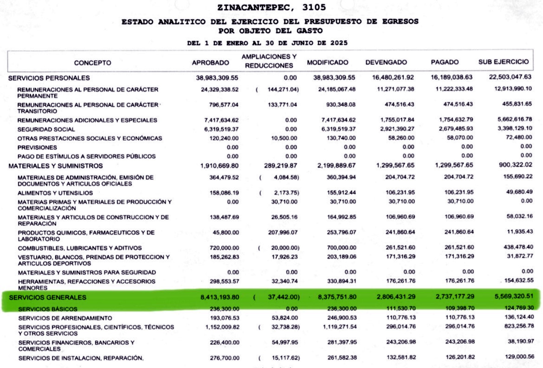Pero lo verdaderamente pintoresco está en el rubro de Servicios Generales, donde apenas se destinaron 8 millones 413 mil 193 pesos. ¿Y qué son los servicios generales? Pues básicamente lo que permite que la institución funcione sin que se caiga a pedazos: luz, agua, mantenimiento, papelería, transporte, limpieza, vigilancia… en fin, lo indispensable para que la operación cotidiana no dependa de milagros.