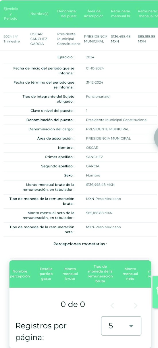 Resulta irónico que, mientras el discurso oficial presume “honestidad y trabajo cercano a la gente”, los datos más básicos como cuánto gana el encargado del dinero público estén más escondidos que la eficiencia de sus servicios municipales.