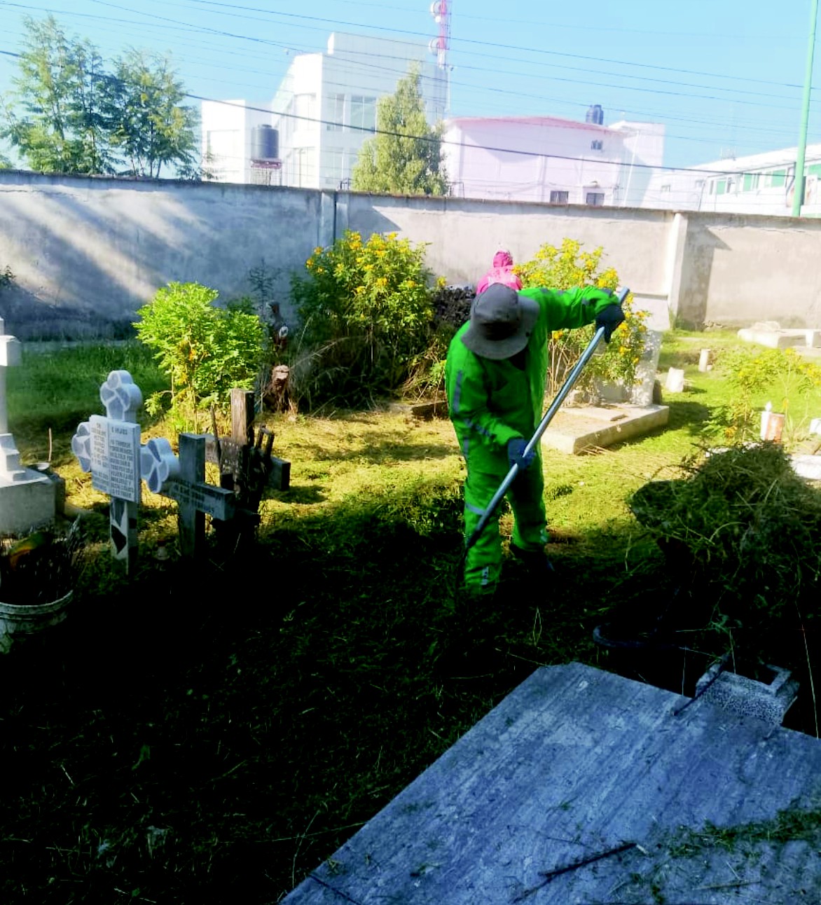 A través de la Dirección General de Servicios Públicos, el personal de limpia ha realizado más de 50 mantenimientos integrales en el Panteón General, en los delegacionales y en el Cementerio Municipal; las labores comprenden poda de pasto, barrido de pasillos, recolección de producto vegetal, retiro de escombro y mantenimiento a las piletas, acciones que devuelven la dignidad y serenidad a estos lugares de memoria y encuentro.