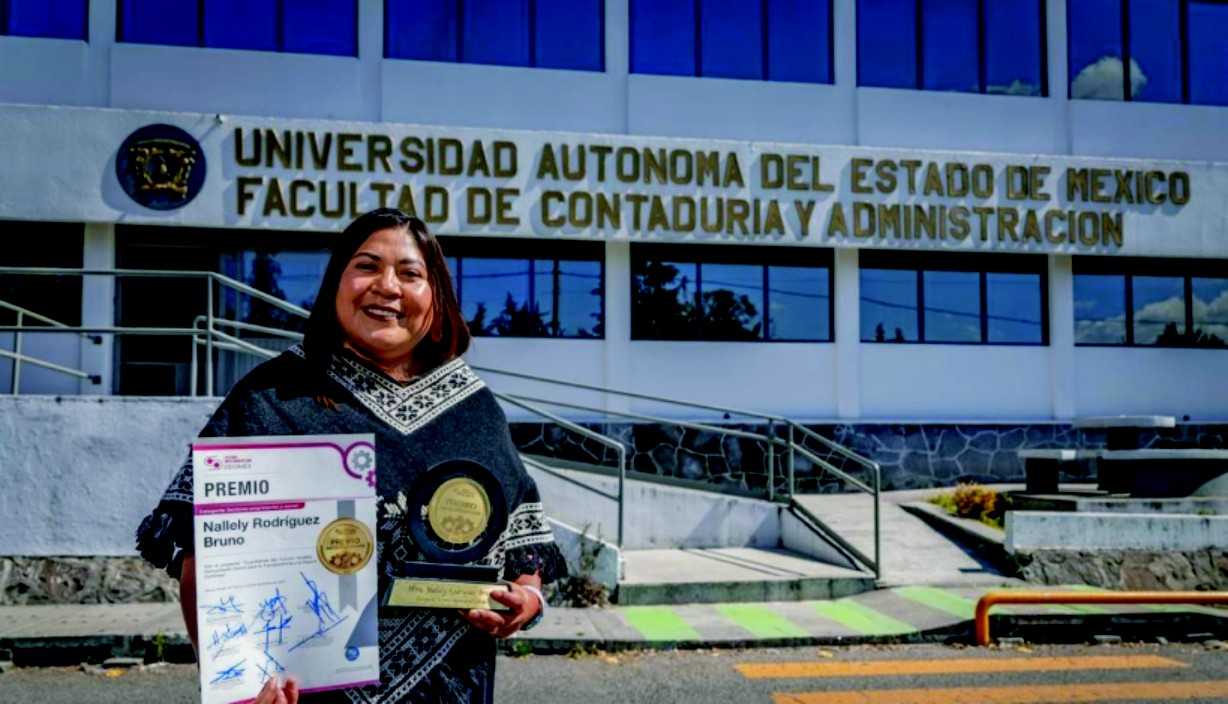 Por su destacada labor comunitaria orientada a fortalecer la participación ciudadana de infancias, juventudes y mujeres otomíes, Nallely Rodríguez Bruno, egresada de la Facultad de Contaduría y Administración de la Universidad Autónoma del Estado de México (UAEMéx), fue distinguida con el Premio Anual Anticorrupción del Estado de México y Municipios, en su segunda edición 2025.