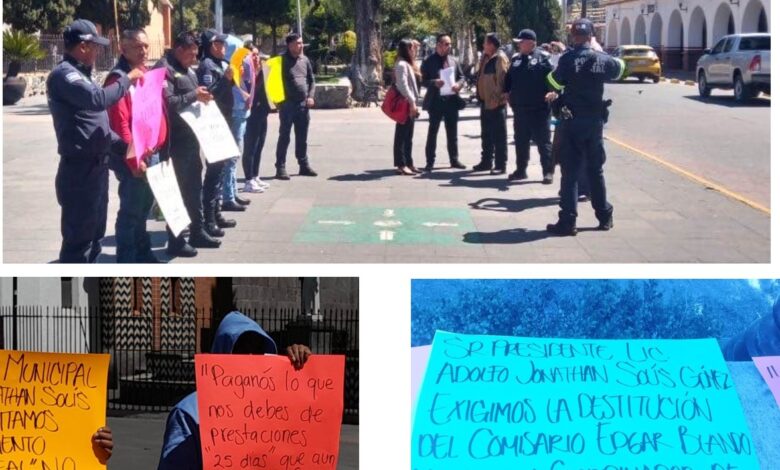 En una de las cartulinas como se observa los elementos de la policía exigen y piden que se destituya al comisario de esta agrupación el Edgar Blando Hidalgo, así como el coordinador de tránsito Arturo Álvarez Nieto.