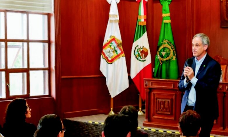 Durante el encuentro con la comunidad universitaria, al que asistieron la rectora Martha Patricia Zarza Delgado y la directora general de Comunicación Social Universitaria, María Fernanda Valdés Figueroa, el especialista destacó la importancia de impulsar un liderazgo basado en el servicio, la colaboración y el compromiso con el bienestar colectivo.