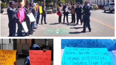 Almoloya de Juárez, la policía municipal, se manifiesta para exigir sus derechos laborales, con tremendas cartulinas, que se lee la…